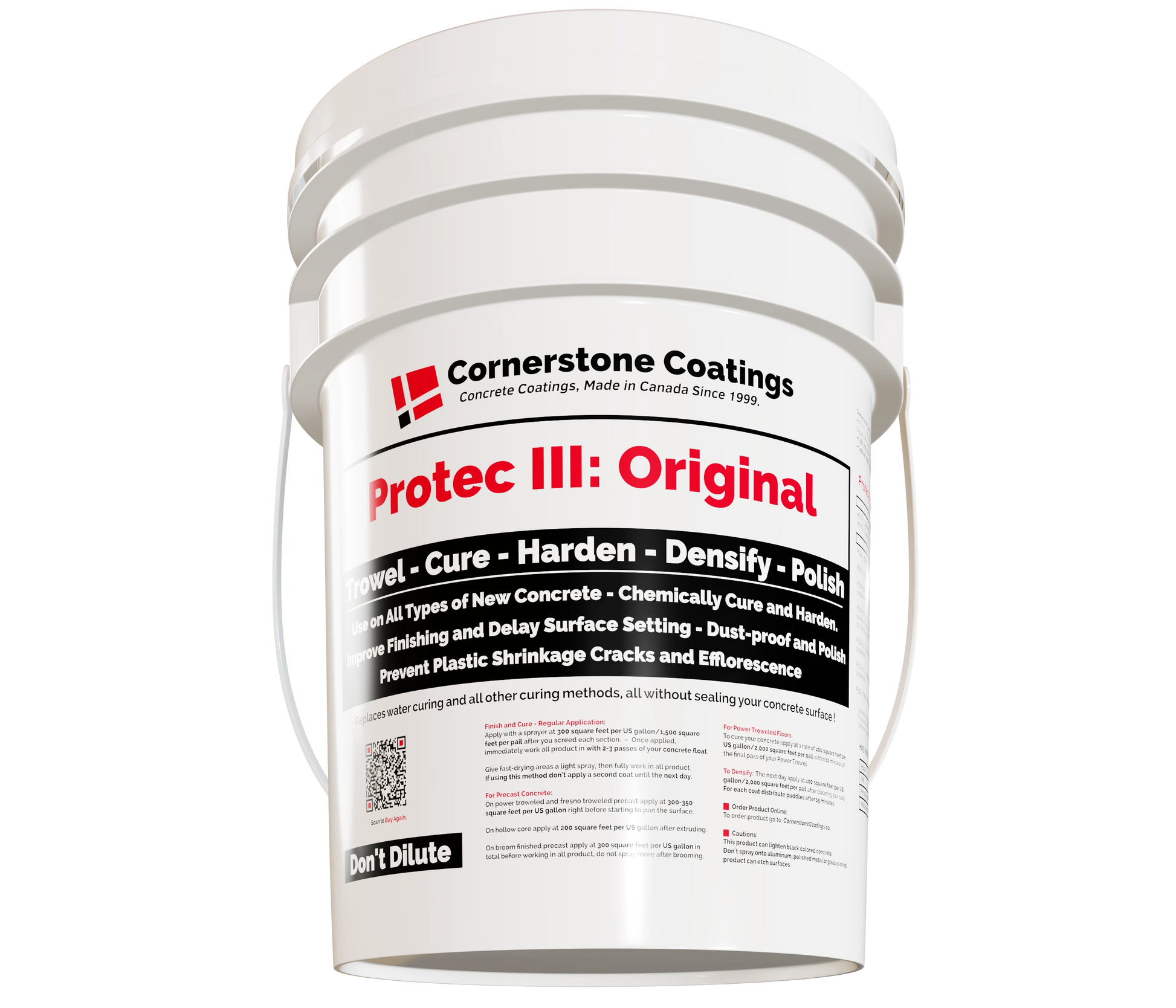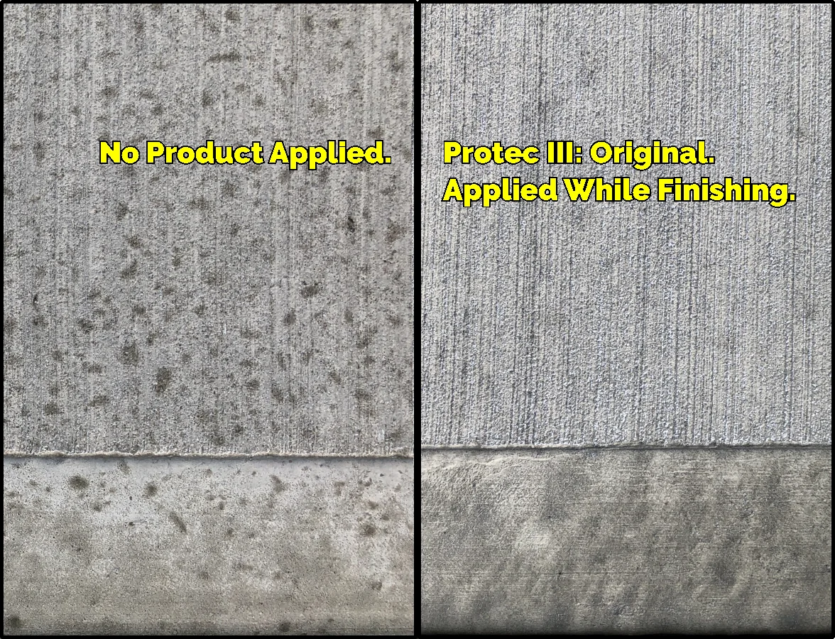 By reacting with the alkali minerals in your concrete surface Protec III: Original prevents white efflorescence from coming out and staining your concrete, this also densifies your concrete surface.